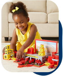 Save $16.00Chunky Community Helpers Vehicle Set | 4-Piece Push & Roll TrucksTwo Toddlers Playing with Chunky Community Helper Vehicles