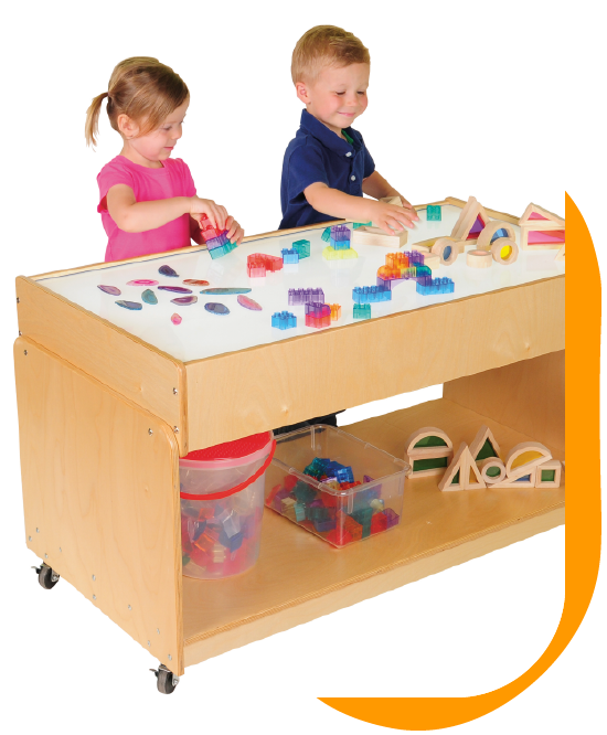 - Consider the storage space available in the classroom. You will want to ensure materials are easily accessible to teachers and students without causing clutter. If your storage is limited, you may want to consider a light table that incorporates storage space into the design.