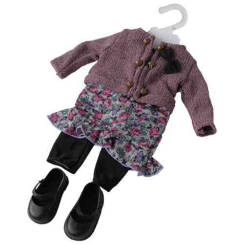 This fun, 4 piece dress-up clothing set is perfect for colder weather dress-up play! Designed and crafted to stand up to lots of 18" doll play, this fun clothing set is featured in the Winter Wardrobe set (LOT-36L) and features a violet print dress and sweater. Dolls sold separately.